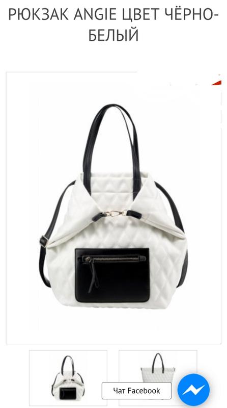 новая женская сумка-шоппер сумка-рюкзак Трансформер бренда Angie. Цвет - белый с черным декором. материал - искусственная кожа. РОЗМІР 42см-36см-11см