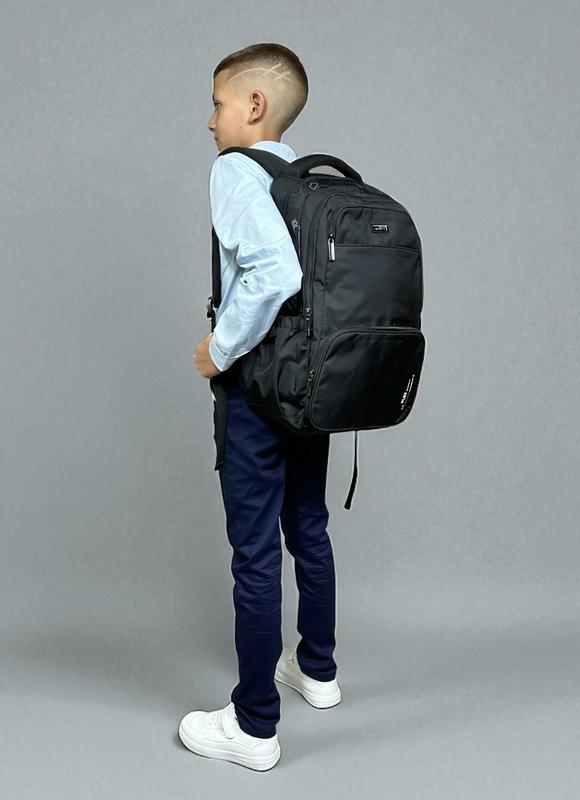 Стильный рюкзак. Имеет большое внутреннее отделение, в середине с маленьким карманчиком + 3 на замочке извне + карманчики с обеих сторон. Шлейки регулируются. 43,5*29*18см. 4 клас+ Супер качество. Рекомендую !