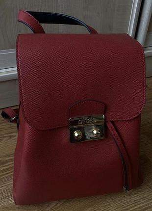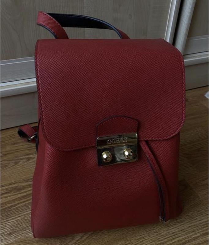 рюкзак приємного червоного кольору на одне відділення, є незначні потертості, можна носити за ручку, можна на плечі. вмісткий. розмір середній, не маленький. відправка лише НП.