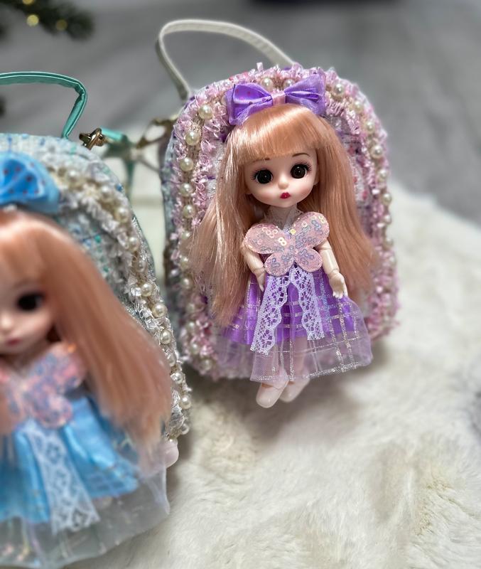 НОВИНОЧКА 2025рока 👑невероятно красивый рюкзак с куколкой 👑игрушка прикреплена,снять нельзя,руки и ноги подвижны Размер 14*19*6 43 ❌внимание!е наляжка по предоплате обычным заказам ( через шкаф наложки нет, безопасной оплатой не работаем) заказ через шкаф только по полной оплате! 🛑перед заказом уточняйте наличие размера!