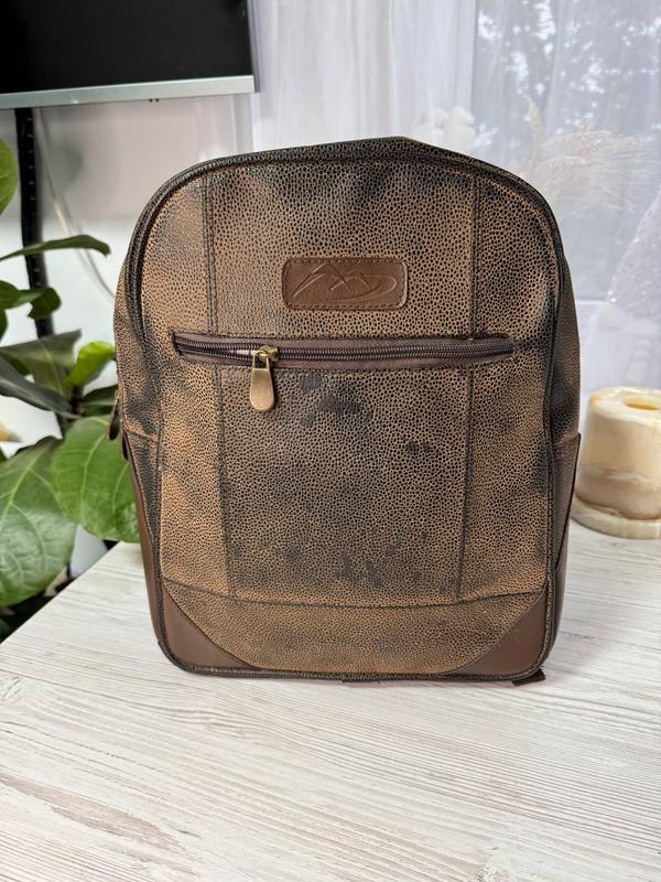 качественный рюкзак, из плотного и фактурного материала. НА подкладке имеющий внутренний карман. Бренд : Замеры Высота - 34см Ширина — 26,5 см Глубина - 12 см Эффекты: на фото