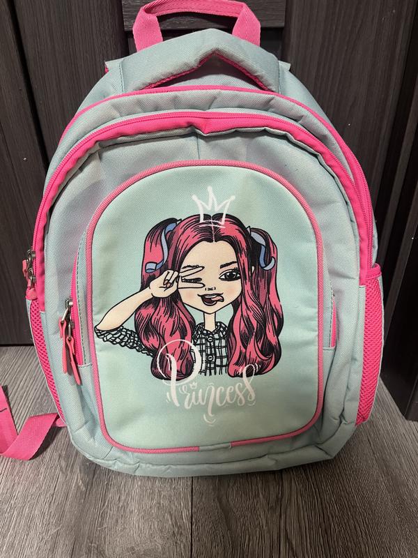 Портфель з плямами, але я думаю, що їх можна відіпрати . Має три відділи перший для канцелярії другий для перекусу третій для підручників, зошитів тощо… З ортопедичною спинкою, з двома карманами для пляшок води