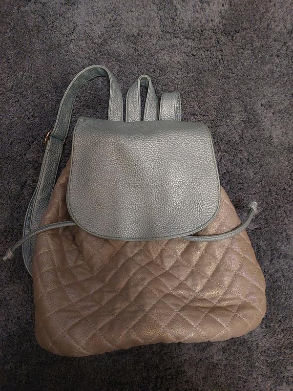 рюкзак в хорошем состоянии, есть дефект с молнией (фото). просторный, есть один карман. красиво переливается, приятный голубой цвет
