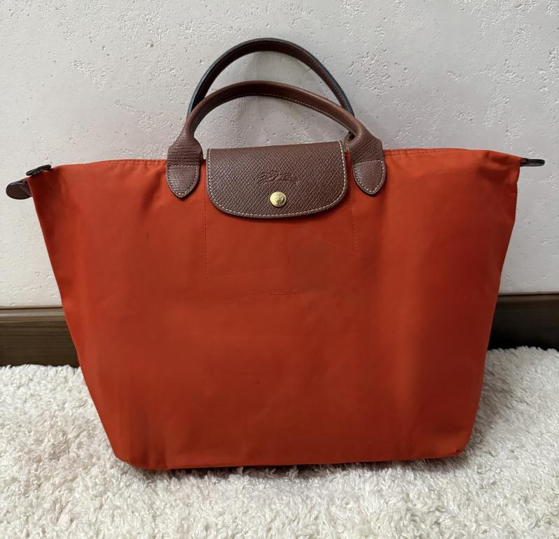 Розкішна, стильна, впінаваєма сумка від Longchamp.Має одне відділення і відкриту кишеньку. Ширина-47 Висота-28 Дно-20