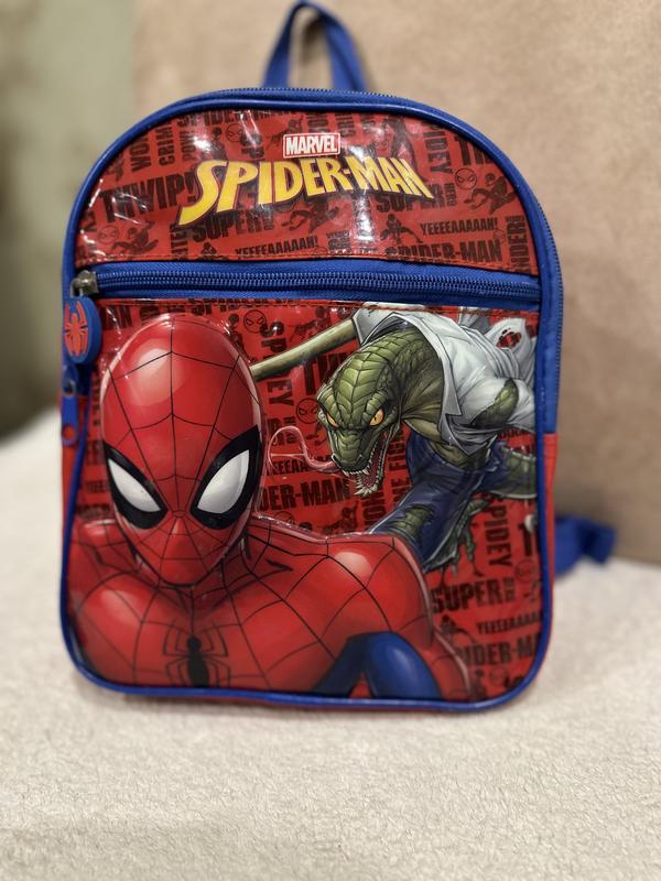 Дитячий рюкзак від Marvel з персонажем Spider Man,тканина поліестр, в червоному кольорі з синіми шлейками. Має одну велику кишеню і одну невеличку спереду. Заміри: довжина 21 см, висота 25 см, ширина 10 см.