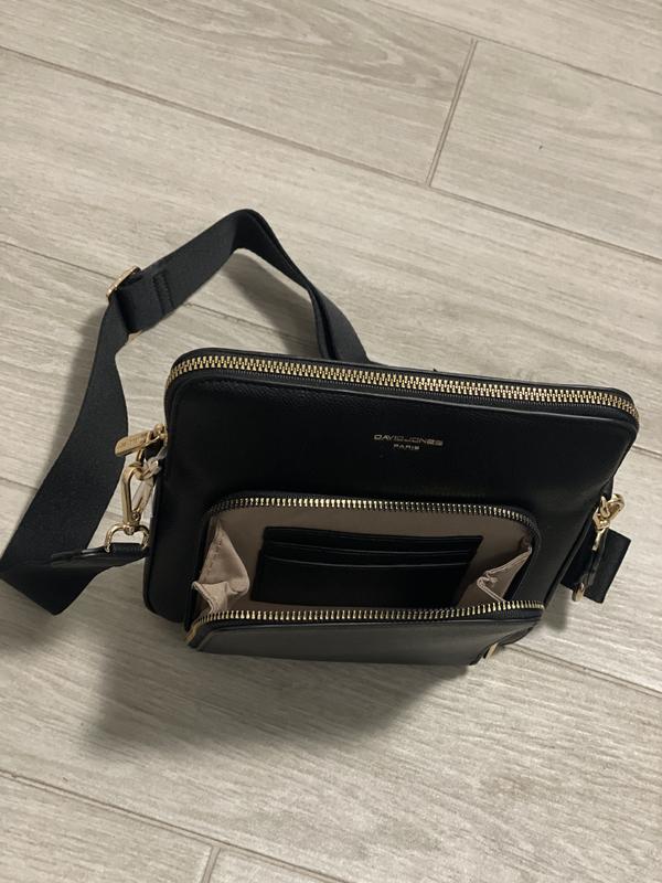 Сучасна сумка через плече David Jones. Внутрішня кишеня на блискавці та відкрита кишеня. Також внутрішня кишеня для карток. Ремінець знімний та регульований. Розміри: 23x15x5 см Матеріал: Синтетика
