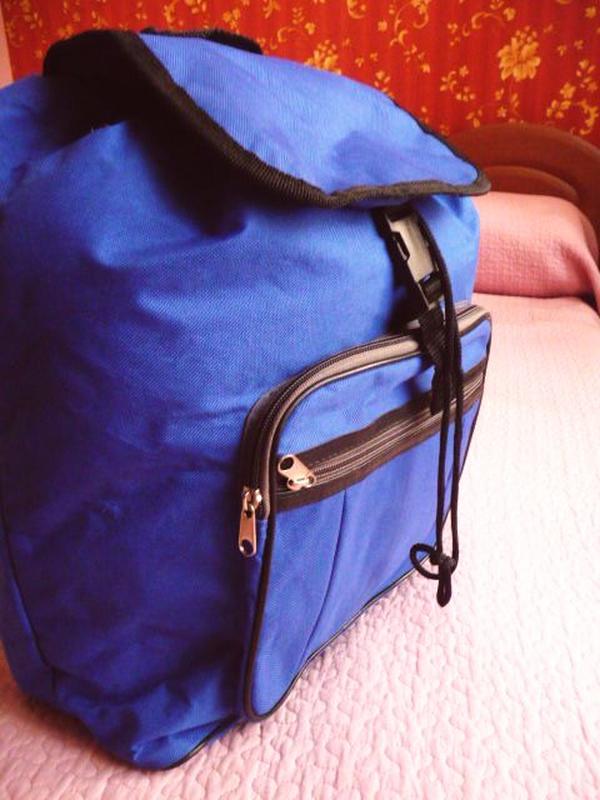 Рюкзак міський. Розмір: 17х30х38 див. Місткість: 0.18м3 Матеріал: поліестер. Колір: синій. На лицьовій стороні два великих накладних кишені на блискавках. Закривається шляхом обертання шнура на пружинної пряжці + верхня накладка на пружинистом роз'ємі. Довжина лямок регулюється. Тот случай, когда с собой можно взять все, что угодно, еще и место останется! Этот рюкзак принесет в вашу жизнь в прямом и переносном смысле только хорошее, важное, нужное. Отлично сшит. Крепкий. Крепления, места соединения ручек, хлястиков и лямок надежные, вместительное основное отделение и накладные карманы для полезных "мелочей". Удобный, красивый, легкий и вместительный. Смело берите его с собой в путешествие, в школу или на тренировку.