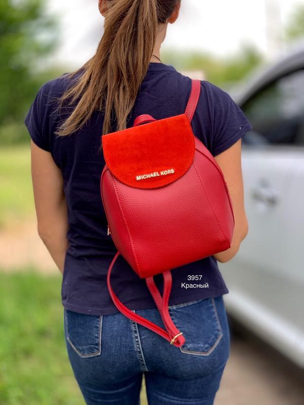 Красный, чёрный, бордо, бронза-капучино, жёлтый, Сумка-рюкзак Натуральная замша и кожзам 21х26 Одно отделение на молнии. Внутри два кармана из кожзама.