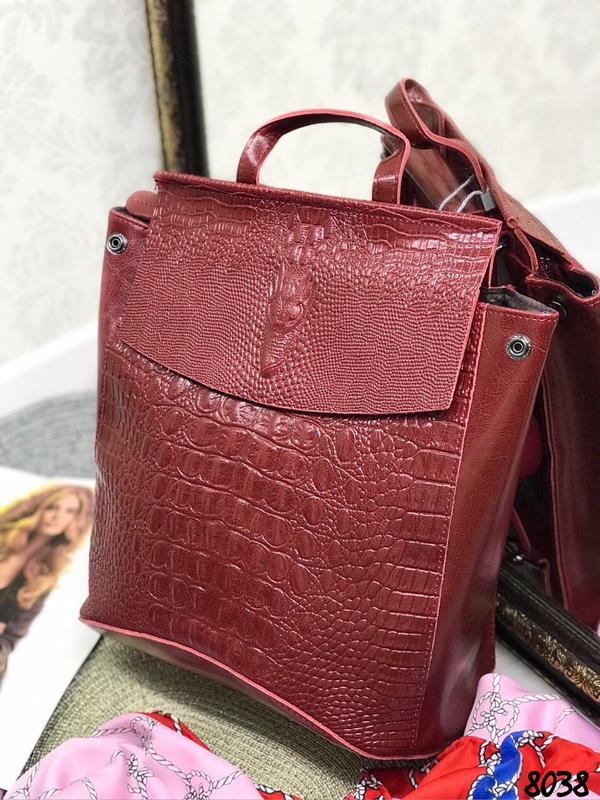 Код 8038 ЛУЧШАЯ ЦЕНА 🔥🔥🔥 Любимый Рюкзак в наличии❗️❗️❗️ рюкзак крокодил 🎒- сумка- трансформер! Цвет: чёрный, мята перламутр, вишня и никель Размер: 27/34 см Материал: Натуральная кожа, длинные ремешки регулируется как для рюкзака так и для ручки на плечо 👍