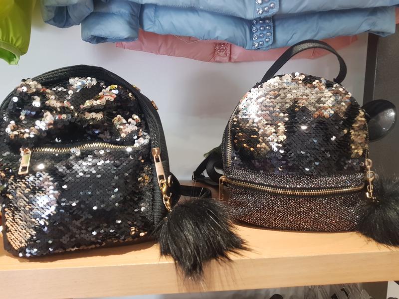 Сумка рюкзак чорна з паєтками висота 21, ширина 18