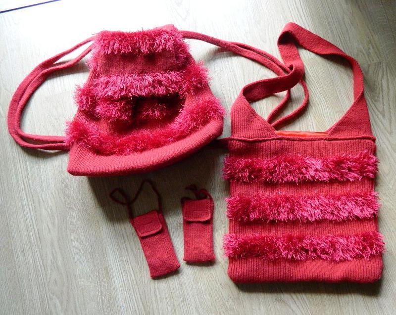 Всі речі в дуже хорошому стані, тільки на внутрішній стороні сумки присутнє незначне закошлачення. Сумка закривається на замок, рюкзак - затягується, чохли - на липучках. Всі речі на підкладці, в сумці і рюкзаку в середині одне відділення і по 2 бокових карманчика. Сумка: 31 х 30, висота ручки - 37 см. Рюкзак: 31 х 33 х 10. Чохли: 13 х 6. Ціна за все. Продам окремо 2 і 2. Без повернень. Відповім на всі питання. Надам додаткові фото.