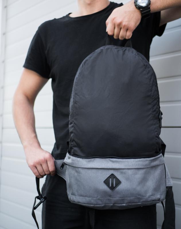 Сумка-трансформер Pobedov waist bag Transformer (А(Р)00048) світло-сірий 🎒Сумка-трансформер Pobedov waist bag Transformer (А(Р)00047) темно-сірий - Уникальное , изделие , которое трансформируется с поясной сумки в рюкзак . - В изделии два отделение , в основном есть дополнительные отделения для мелких вещей, которые отделены сеткой. - Под верхнем клапаном находится материал из плащевки , который оттуда легко достается превращая сумочку в рюкзак и наоборот . - Все молнии в изделии от японского производителя YKK . - Фирменная нашивка из натуральной кожи .