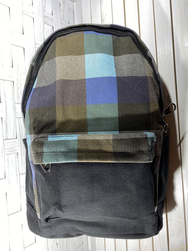 Одне основне відділення з кишенею, два бічних відділення і кишеня спереду. Розміри: висота 42 см. ширина 26 див. товщина 14 див.