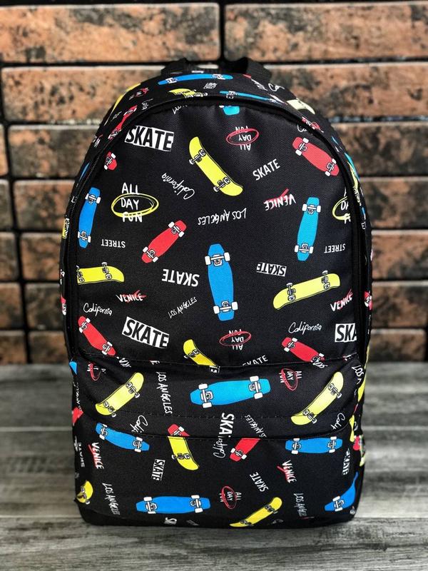 Рюкзак Скейт ➡️артикул: r65 матеріал: поліестер тип застібки: блискавка рівень якості: високий колір: чорний, жовтий, червоний, білий, голубий стать: унісекс кількість відділень: 3 розміри: 40х32.5х16,5см
