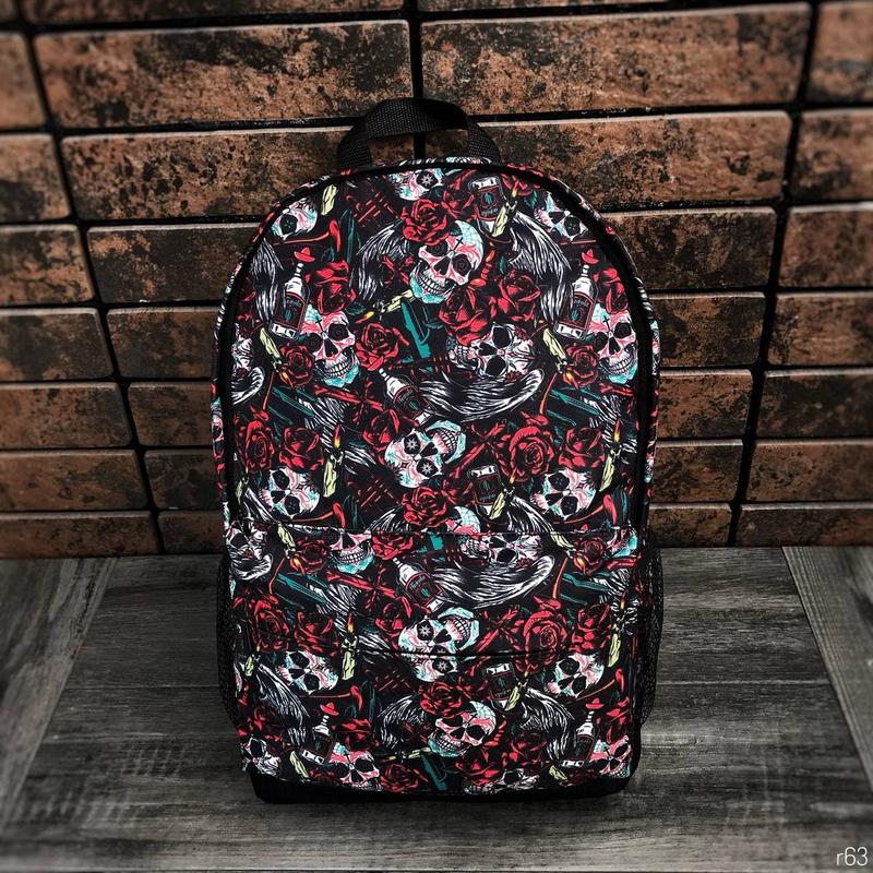 Рюкзак Череп ➡️артикул: r63 матеріал: поліестер тип застібки: блискавка рівень якості: високий колір: чорний, зелений, червоний, білий стать: унісекс кількість відділень: 3 розміри: 40х32.5х16,5см
