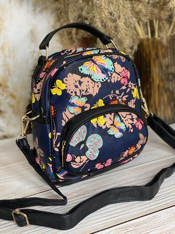 Стильный и модный рюкзак с оригинальным дизайном. Можно носить как сумочку через плечо. В наличии есть расцветки. Удобный и вместительный Рюкзак универсальный, подойдет для школьников, прогулок по городу, поездок в другие города, на экскурсии, различные занятия, походов на пляж. Материал рюкзака- кожзаменитель. Рюкзак держит форму. Размеры: 20»17»9 Рюкзак закрывается на прочную молнию, внутри одно основное отделение, карман на молнии. На лицевой стороне рюкзака расположен карман на молнии, так же на внешней части боковые карманы