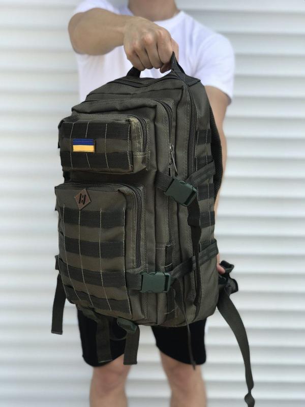 артикул 1018 виробник: Україна матеріал: кринкель 1200D Два основних відділення та два кармани. Система MOLLY зпереду та по боках рюкзака. Ремні для кріплення дод.спорядження внизу та по боках рюкзака. В комплекті поясний ремінь. Чудове пошиття Розмір: на фото 25л.