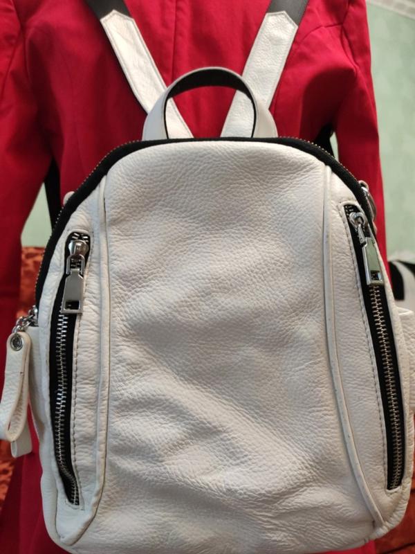 В белом цвете. Подкладка -черный атлас. Дефектов и нюансов нет. Сведений о производителе не нашла. Можете спокойно заказывать, рюкзак в состоянии нового.