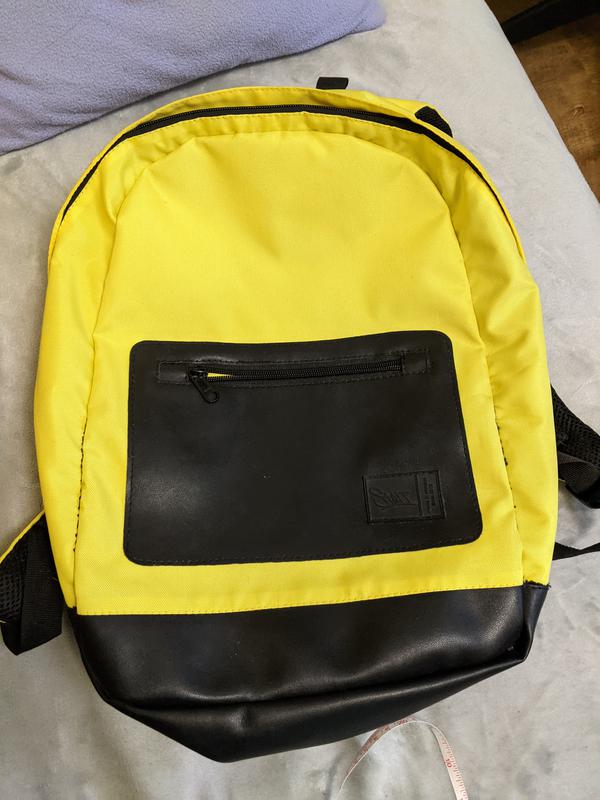 Отличное состояние. Водоотталкивающий. Длина 43 см. Ширина 38 см. На спинке была сетка, из - за неё потела спина постоянно, я решила её убрать так лучше. Рюкзак целый, дефектов нет.