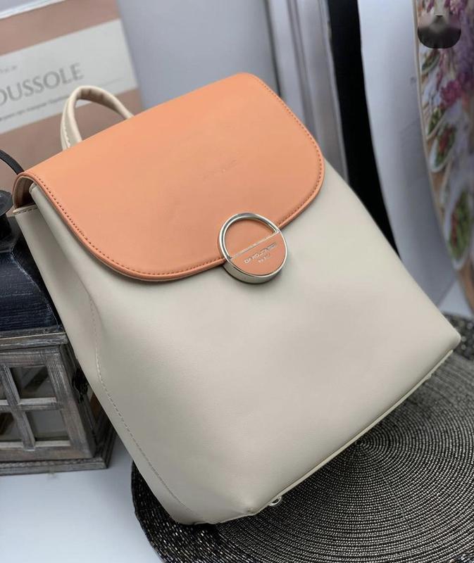 Шикарный рюкзачек от David Jones В наличии Держит форму. Внутри качественная подкладка и карманы. На донышке ножки. Закрывается на молнию и сверху клапан на магните. Размер 26*23*10