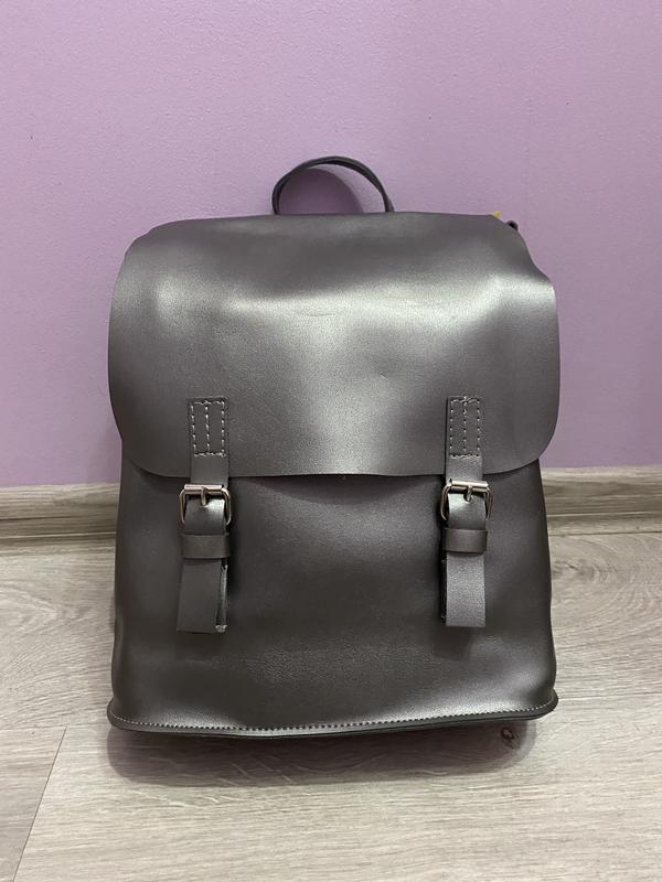 Отличный рюкзак без потёртостей и царапин. Вмещается лист А4. Высота 31-32 см. Все заклёпки работают.