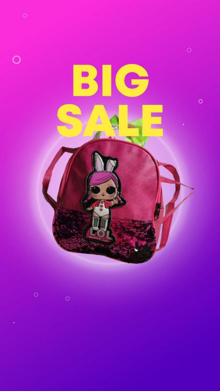 Рюкзак с пайетками Высота 20 см Ширина 17 см (Рисунок может быть любым с серии Lol ).