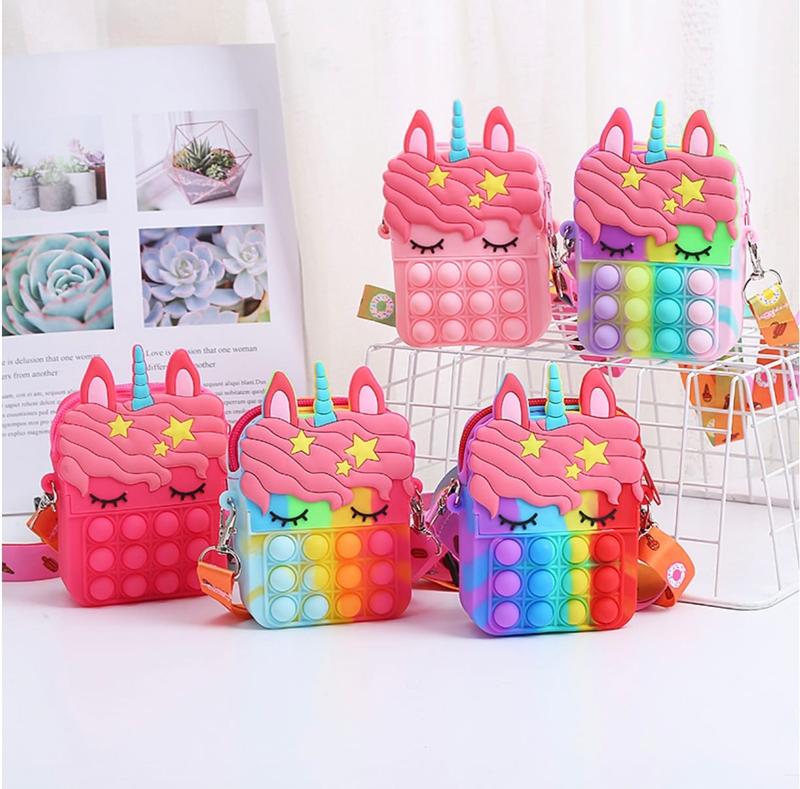 В наличии🤩🤩🤩 В 4 расцветках Сумочка через плече Единорог POP IT Маленькая сумка Поп Ит Единорог - уникальный аксессуар, она легко чистится и в ней можно переносить все мелкие необходимые вещи. Идеально подходит для встреч, прогулок Отлично подойдет в качестве подарка для маленьких модниц❤ Размер 12 * 8,5 см