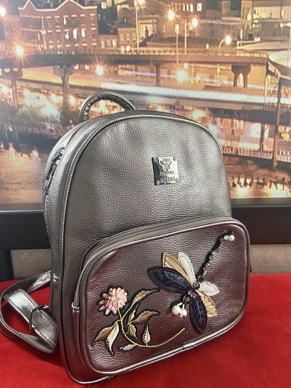 Прекрасный рюкзак из качественной прессованной кожи темно-розового цвета с блеском, изделие выполнено удивительно, яркий стиль всегда в моде. Удобный вариант для прогулок, для похода в кино, поездок и др. Размеры : Высота изделия 33 см Длина изделия 25 см Глубина изделия 12 см. Внутри есть несколько кармашков, один из которых на молнии, качественная одежда. У рюкзака качественная фурнитура, которая не облезает, не темнеет. Рюкзак вместительный! Смотрите другие свои вещи и сумки в профиле. Всегда договариваемся о цене