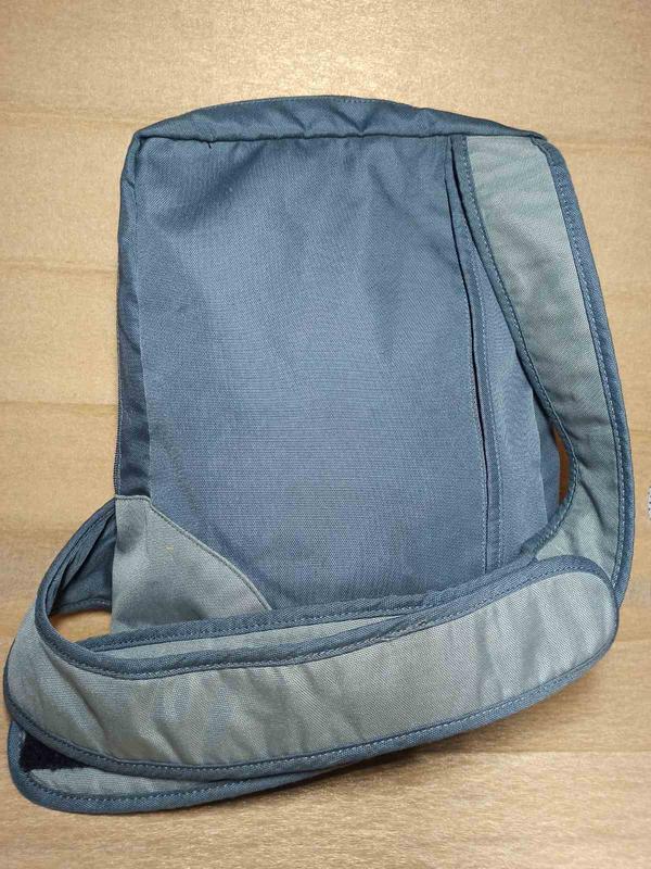 Отличный рюкзак через одно плечо. Снято название фирмы( предпоследнее фото). На шлее требуется замена липучек и есть карман с замком, он работает, но от собачки оторван хвостик. В.33см, ш.24см, г.по дну 9см. Нюансы учла в цене.