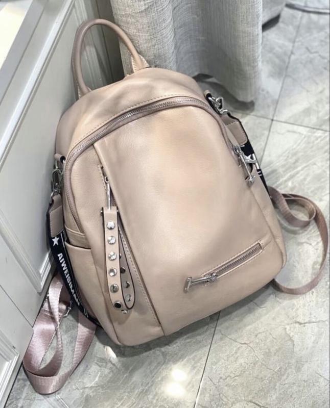 Рюкзак из натуральной кожи В наличии пудра. Полностью кожа натуральная. Размер 30*25*11 см. Есть ремень на плечо, можно носить как сумку.