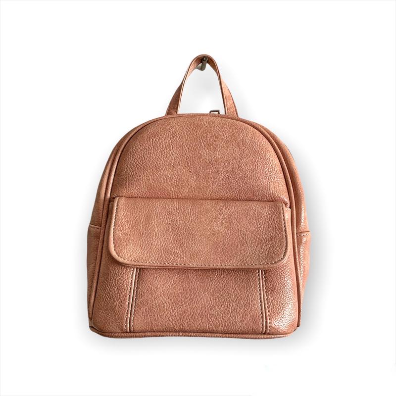 Небольшой рюкзачок и двумя кармашками. Один наружный на кнопках. Один внутренний на молнии. Ремешки регулируются, можно сделать сделать один длинный и носить как сумку.
