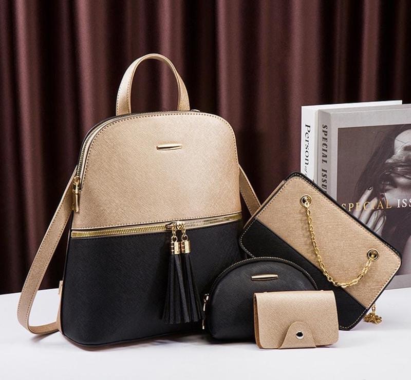 Рюкзак 4 в 1 арт. mil. 9996 Цена : 850 грн Высота рюкзака : 29,5 см Ширина : 27 см Клатч высота : 13 см Ширина 19 см Глубина : 5,5 см Косметичка высота 10,5 см Ширина : 15 см Визитница высота : 10 см Ширина : 7 см Цвет: голубой, белый, розовый, мокко Материал: эко кожа