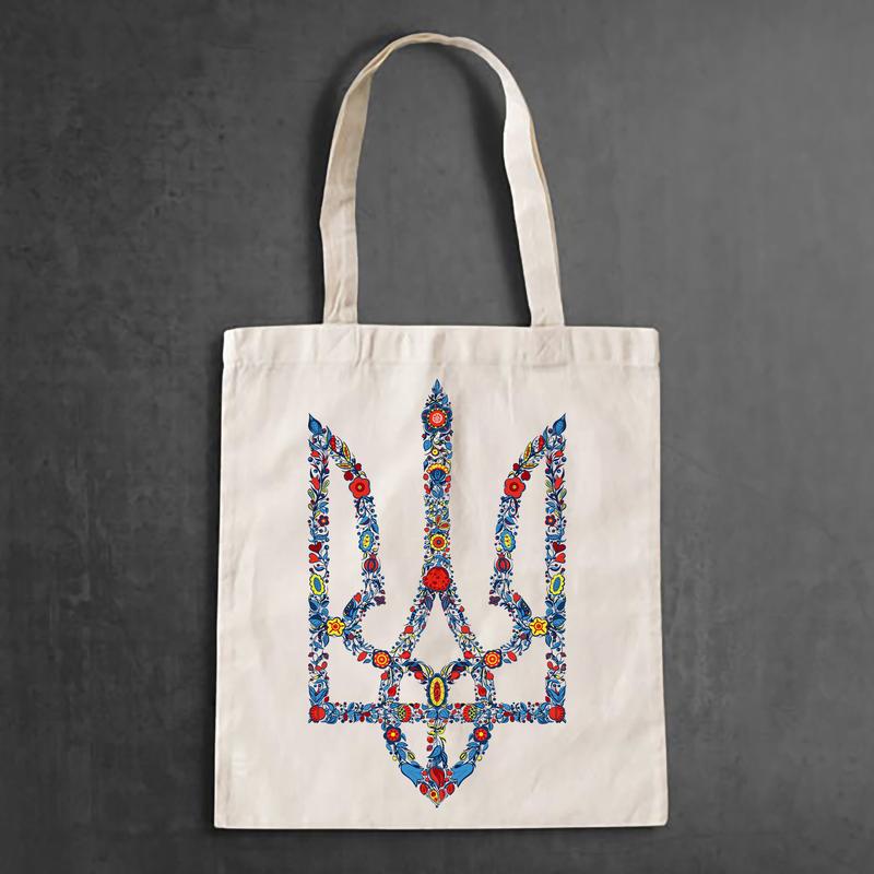 Эко-сумка, шоппер, с патриотическим принтом "герб украины. трезуб. герб украины цветочный...