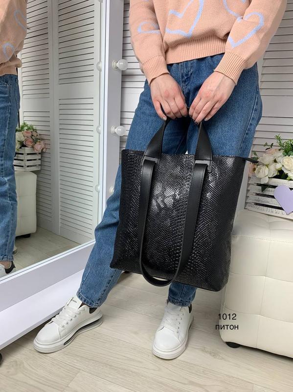 🔥🆕Код 1012 🔝🔥Велика сумка 🔥ШОППЕР. ☝️формат А4. ✔️Питон эко.кожа. ✂️ширина 30 см.,висота 35 см, дно 11 см. Высота плечевых ручек 35 см. ✔️Сумка закрывается на молнию, внутри подкладка, два отделения, по середине перегородка-карман на молнии.