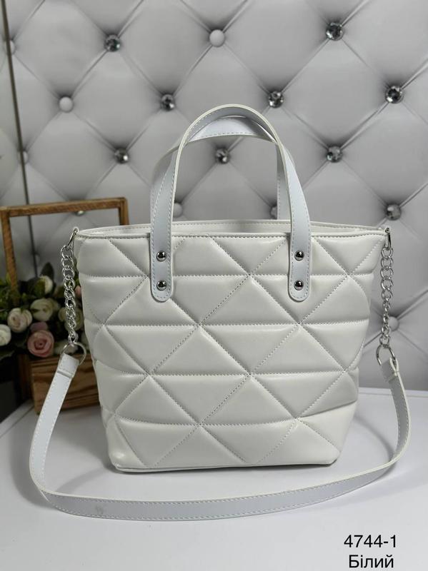 Экокожа 23 см ширина по дну 33 см ширина по верху 24 см высота 13 см глубина Высота коротких ручек 13 см Высота длинной ручки 40 см Одно отделение на молнии, разделенное пополам отделением на молнии. Внутри карман на молнии и карман для телефона.