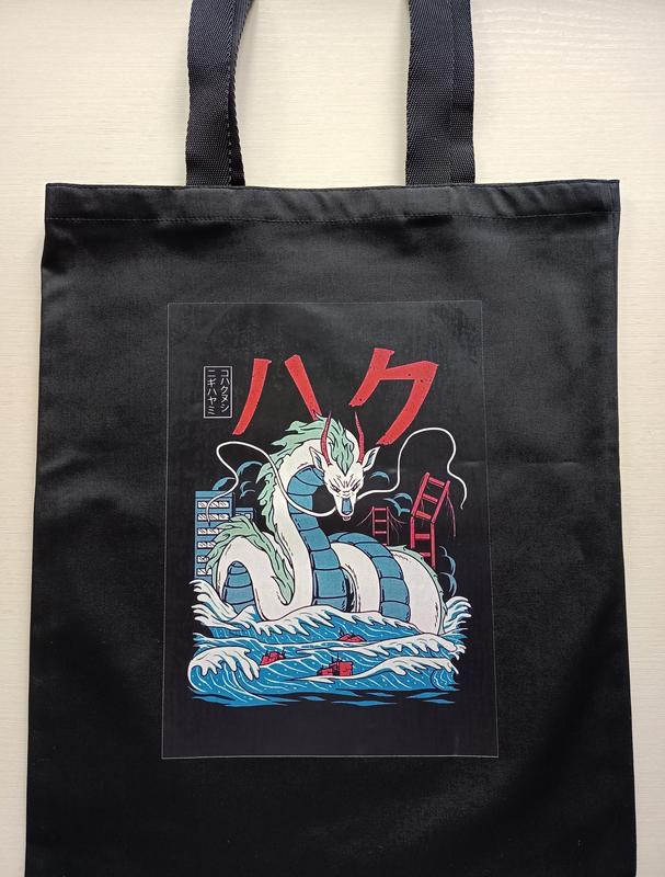 Шоппер "Отнесенные привидениями" Размер 42*35 Высота ручек 28 см для ношения на плече Рисунок с одной стороны кольори: черный беж ( не фарбована бавовна)