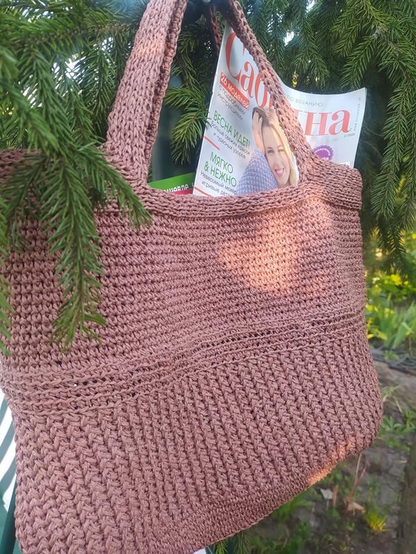 Шоппер связан из витой рафии.Цвет - пыльная роза. Размеры - ширина-38 см, высота с ручками-40 см.Очень удобный, форму держит, вместительный, легкий, прочный - выдержит до 5 кг.Можна носить на плече или в руках.Либо пляжный вариант.👍👍👍♥️♥️♥️