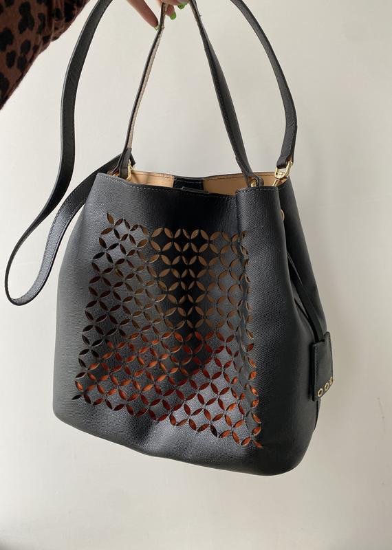 От лежания в шкафу стала очень твердая Ручки с дефектами на фото Без фирмы Есть короткий и длинный ремешок. Внутри сумки есть оранжевая сумка, также есть незначительные дефекты внутри сумки, в носке абсолютно не видно. В целом Очень эффектно смотрится