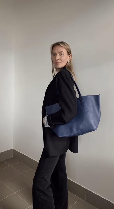 Содержимое сумка, внутри 1 большое отделение Без сплошного замка, лишь металлическая застежка посередине Размеры : высота -27см, ширина сверху - 47 см