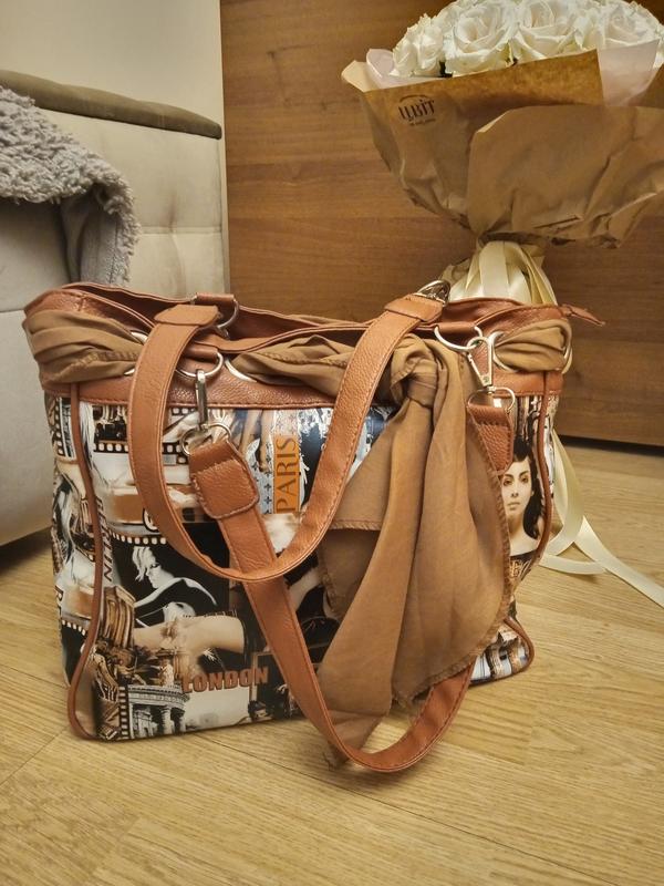 Сумка шоппер, стиль и индивидуальность. Высота 30 см Ширина 41см Две ручки, внешний карманчик на застежке, в середине вместитель, меет три отделения и карманчики.