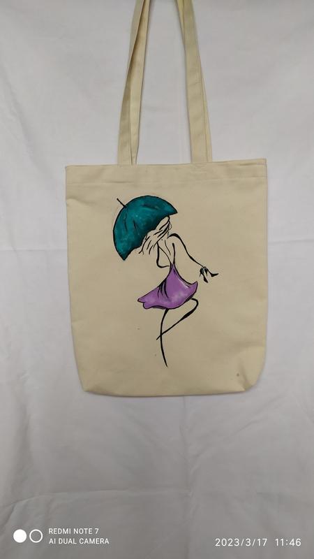 Сумка шопер с двумя ручками,для ношения через плечо,. Размер сумки позволяет вмещать габаритные вещи,Очень удобная и вместительная. Вид,сумка -торба шопер.. Ручная роспись - девушка с зонтом. Размеры: Высота 44 см Ширина 38 см длинна ручек - 85 см