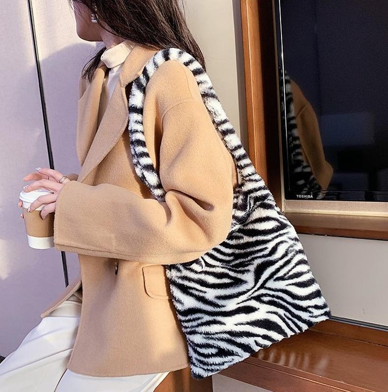 🔶 Трендовая плюшевая сумка шоппер с принтом зебра 🦓 🖤🤍 ⠀ 🔸 мягкий искусственный мех 🔸 шир 31 × вис 32 см 🔸 ручка 65 см