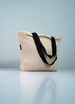 Сумка шоппер женская унисекс usvit "tedy" мягкая мех молочная\бежевая