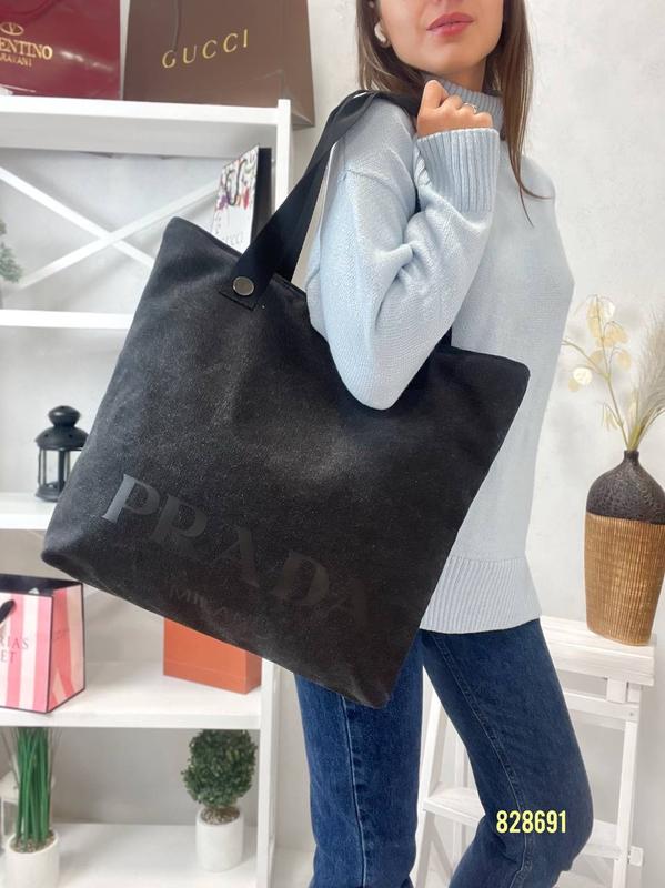 828691 Новинка ❤️🔥 Сумка Прада шоппер на молнии Цена : 930 грн Цвет: черный Материал: плотная текстурная ткань-супер качество на молнии и подкладке, внутри кармашки Удобные ручки как на плечо, так и в руке Размер: 38/30
