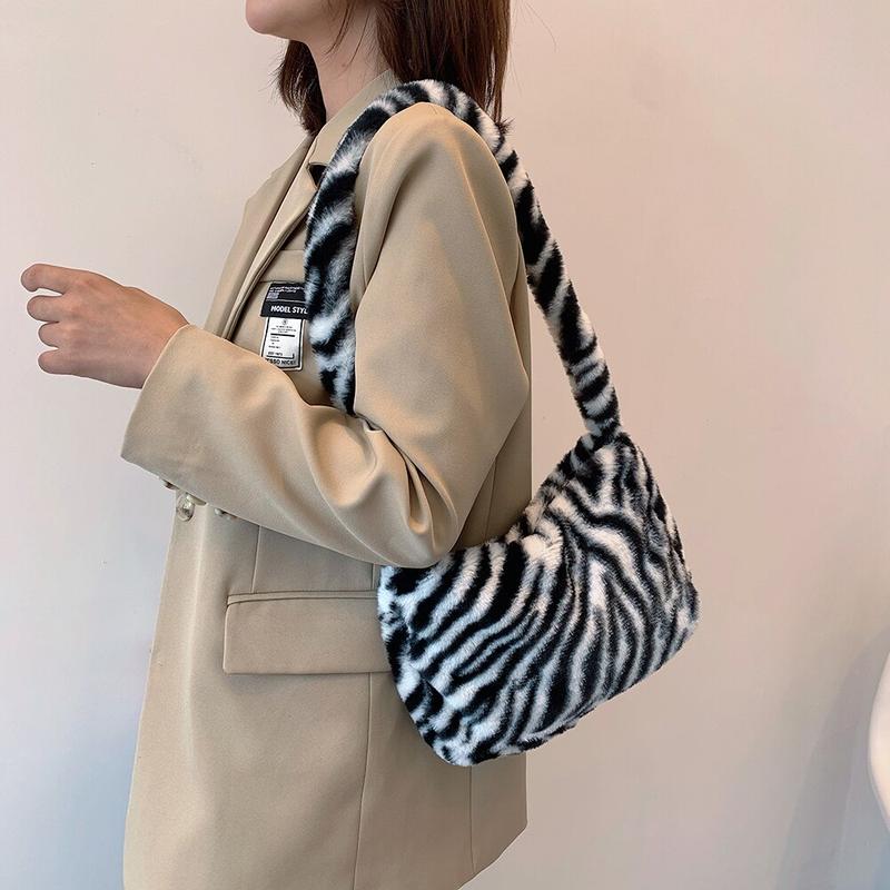 ◽ Меховая сумочка с принтом Зебра 🦓🖤🤍 ◽ Шир 31 * Вис 17,5 см ◽ Ручка 74 см ◽ На подкладочке. Застежка молния ⠀