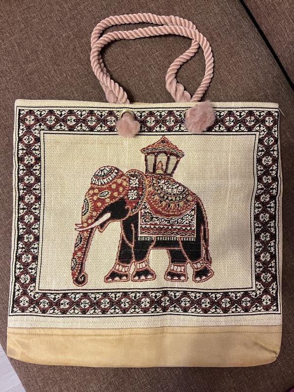 Сумка выполнена из плотной ткани, с подкладкой, украшена элементами вышивки (слон,обонок), замочка,подходит для пляжного,улического образа.