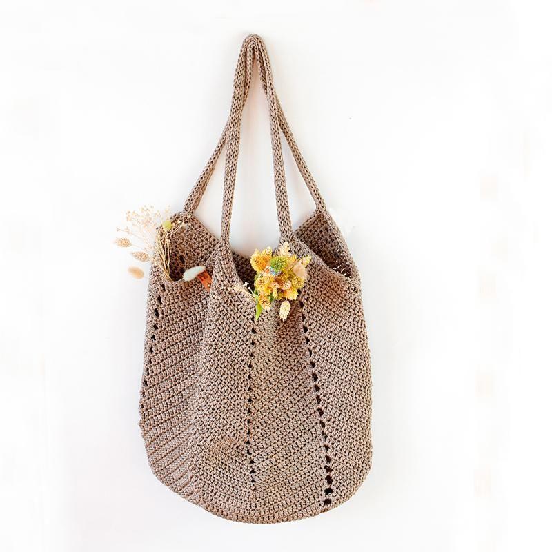 Вязанная сумка-шоппер из полиэфирного шнура. Это объемная сумка, которая легко вмещает множество покупок. Как правило, шоппер без застежки и своей формой напоминает пакет с удобными большими ручками. Дно квадратное: 22см Высота сумки без ручек: 35 см Длина ручек: 60 см Дополнительные характеристики: Вид : Эко сумка