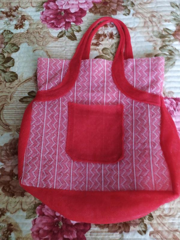 Яркая сумка шоппер для походов в магазины, тт анина очень прочная, есть карманчик, состояние новой