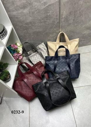 Снова в наличии 📣📣📣📣📣 Код 0232-9. Зернистая экокожа с оттиском Ширина по дну 32 см. Ширина вгорі 42 см. Висота 30 см. Дно 14 см. Висота довгих ручок 28 см. Одно отделение на молнии, разделенное пополам перегородкой на молнии. Внутри открытый карман и карман на молнии. По бокам сумки карабины для затяжки уголков внутрь. Над основной молнией кнопка. На обратной стороне карман на молнии.