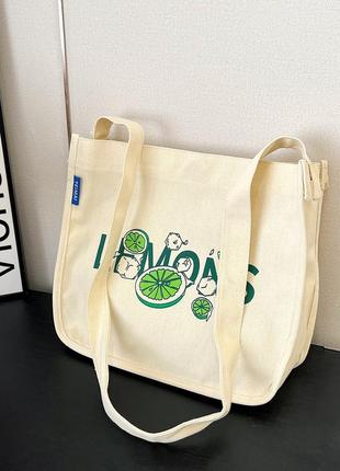 Успей приобрести оригинальную новинку!!! Тканевая сумка шоппер лимон понравится тебе непременно. Сумка имеет два отделения. Модель выполнена из натуральной ткани. Прикрашена принтом лимон. Длина ручек 107 см. Размер: высота сумки 30 см, ширина 35 см, ширина дна 10 см Материал: хлопок.. В наличии молочный цвет. Шоппер застегивается на магнит, что очень удобно в пользовании Легкая и вместительная Начни свой сезон с новой сумкой 🎈🎈🎈.